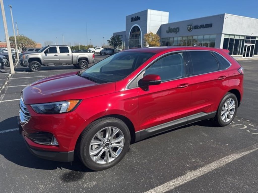 2024 Ford Edge Titanium, EcoBoost 2.0L I4 GTDi DOHC Turbocharged VCT 8-Speed Automatic AWD, 12 Speakers, ActiveX-Trimmed Heated Sport Bucket Seats, Heated front seats, Memory seat, Power Liftgate, Power passenger seat, Radio: B&O Sound System by Bang & Olufsen, SYNC 4A w/Enhanced Voice Recognition, Wheels: 19 Luster Nickel-Painted Aluminum.CarFax 1-Owner Vehicle, Manufacturer Warranty Still Applies - See Dealer for Coverage Details and Expiration, Personal Vehicle as reported to CarFax,