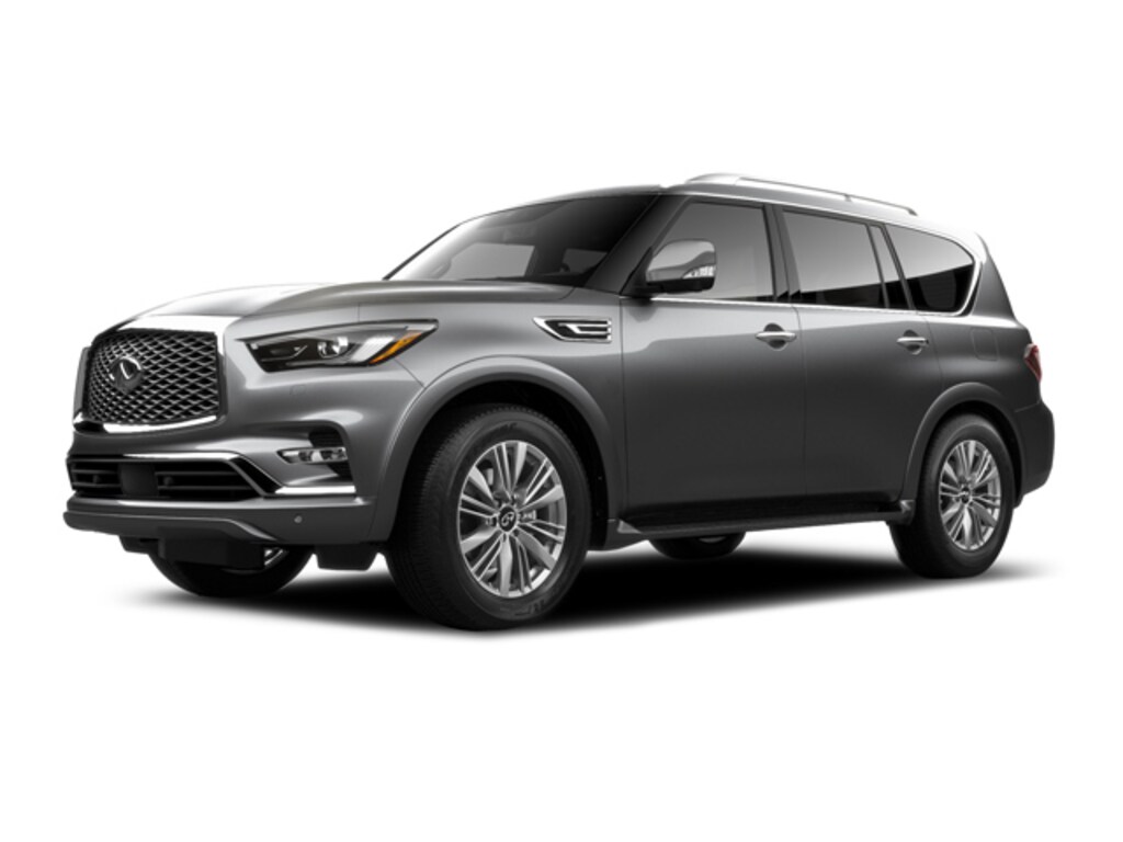 13 Speakers, 2.937 Axle Ratio, 3rd row seats: split-bench, 4-Wheel Disc Brakes, ABS brakes, Air Conditioning, Alloy wheels, AM/FM radio: SiriusXM, Anti-whiplash front head restraints, Apple CarPlay/Android Auto, Auto High-beam Headlights, Auto tilt-away steering wheel, Auto-dimming door mirrors, Auto-dimming Rear-View mirror, Auto-leveling suspension, Automatic temperature control, Brake assist, Bumpers: body-color, CD player, Compass, Delay-off headlights, Driver door bin, Driver vanity mirror, Dual front impact airbags, Dual front side impact airbags, DVD-Audio, Electronic Stability Control, Emergency communication system: INFINITI Connection, Four wheel independent suspension, Front anti-roll bar, Front Bucket Seats, Front Center Armrest, Front dual zone A/C, Front fog lights, Front reading lights, Fully automatic headlights, Garage door transmitter: HomeLink, Heated door mirrors, Heated Front Bucket Seats, Heated front seats, Heated steering wheel, Illuminated entry, Leather Shift Knob, Leather steering wheel, Leather-Appointed Seats, Literature Kit, Low tire pressure warning, Memory seat, Navigation system: INFINITI InTouch Navigation, Occupant sensing airbag, Outside temperature display, Overhead airbag, Overhead console, Panic alarm, Passenger door bin, Passenger vanity mirror, Power door mirrors, Power driver seat, Power Liftgate, Power moonroof, Power passenger seat, Power steering, Power windows, Radio data system, Radio: Bose Audio System w/13 Speakers, Rain sensing wipers, Rear air conditioning, Rear anti-roll bar, Rear audio controls, Rear reading lights, Rear seat center armrest, Rear window defroster, Rear window wiper, Reclining 3rd row seat, Remote keyless entry, Security system, Speed control, Speed-sensing steering, Split folding rear seat, Spoiler, Steering wheel memory, Steering wheel mounted audio controls, Tachometer, Telescoping steering wheel, Tilt steering wheel, Traction control, Trip computer, Turn signal indicator mirrors, Variably intermittent wipers, Voltmeter, Wheels: 20 x 8.0 Aluminum-Alloy.5.6L V8 4WD 7-Speed Automatic