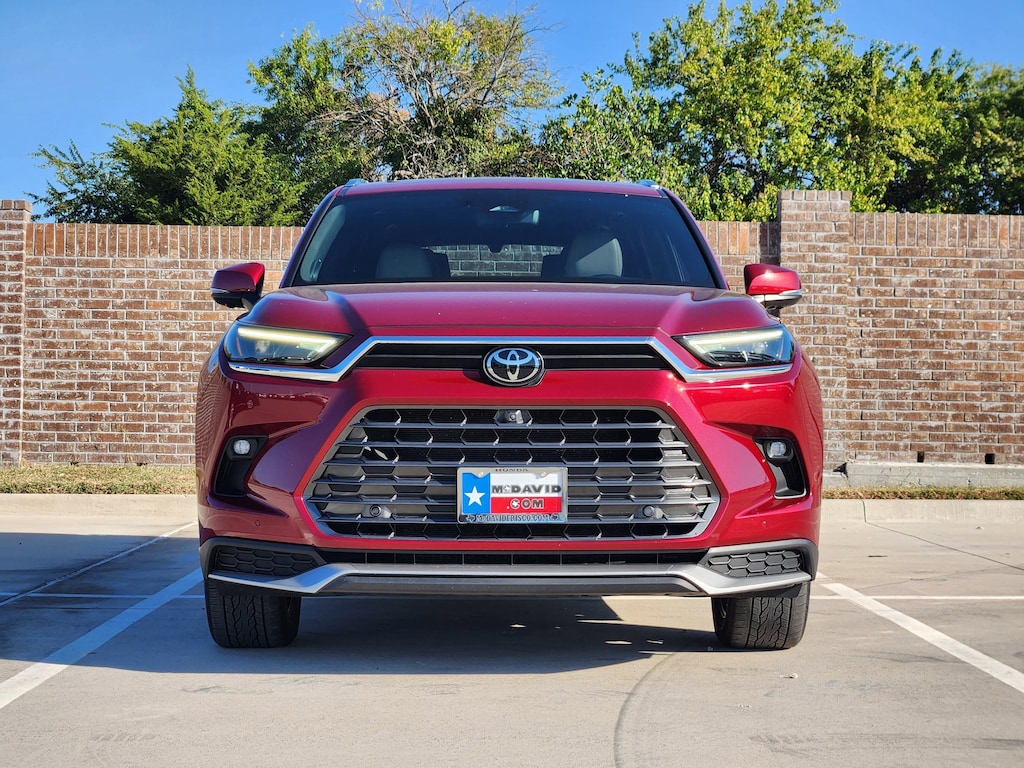 **3RD ROW SEATS**, **ADAPTIVE CRUISE CONTROL**, **ALL WHEEL DRIVE**, **ALLOY WHEELS**, **ANDROID AUTO**, **APPLE CARPLAY**, **BACK UP CAMERA**, **BLIND SPOT ALERT**, **CROSS TRAFFIC ALERT**, **DRIVING ASSISTANCE PACKAGE**, **DUAL ZONE CLIMATE CONTROL**, **HEAD-UP DISPLAY**, **HEATED AND VENTILATED FRONT SEATS**, **HEATED SEATS**, **HEATED STEERING WHEEL**, **HYBRID**, **KEYLESS ENTRY**, **KEYLESS START**, **LANE DEPARTURE WARNING**, **LEATHER SEATS**, **NAVIGATION SYSTEM**, **PANORAMIC ROOF**, **POWER TAILGATE**, **PREMIUM SOUND SYSTEM**, **PREMIUM WHEELS**, **REMOTE ENGINE START**, **SATELLITE RADIO**, **STEERING WHEEL CONTROLS**, **TOW PACKAGE**, **TOYOTA SAFETY SENSE**, **360 DEGREE CAMERA**, ONE OWNER, CLEAN CARFAX, Grand Highlander Hybrid MAX Platinum, 4D Sport Utility, 2.4L 4-Cylinder VVT-i, 6-Speed Automatic, AWD, Ruby Flare Pearl, Light Gray w/Ultrasuede/Leather Seat Trim, 11 Speakers, 20 Aluminum Alloy Wheels, 3rd row seats: split-bench, 4-Wheel Disc Brakes, ABS brakes, Active Cruise Control, Air Conditioning, Alloy wheels, AM/FM radio: SiriusXM, Apple CarPlay/Android Auto, Auto High-beam Headlights, Auto-dimming Rear-View mirror, Automatic temperature control, Brake assist, Bumpers: body-color, Delay-off headlights, Driver door bin, Driver vanity mirror, Dual front impact airbags, Dual front side impact airbags, Electronic Stability Control, Emergency communication system: Safety Connect (up to 10-year trial subscription), Exterior Parking Camera Rear, Four wheel independent suspension, Front anti-roll bar, Front Bucket Seats, Front Center Armrest, Front dual zone A/C, Front fog lights, Front reading lights, Fully automatic headlights, Garage door transmitter: HomeLink, Heads-Up Display, Heated & Ventilated Front Seats w/Memory, Heated door mirrors, Heated front seats, Heated rear seats, Heated steering wheel, Illuminated entry, Knee airbag, Leather Shift Knob, Leather steering wheel, Low tire pressure warning, Memory seat, Navigation System, Navigation system: Drive Connect Cloud Navigation (1-year trial subscription), Occupant sensing airbag, Outside temperature display, Overhead airbag, Overhead console, Panic alarm, Passenger door bin, Passenger vanity mirror, Power door mirrors, Power driver seat, Power Liftgate, Power moonroof, Power passenger seat, Power steering, Power windows, Radio: 12.3 Toyota Audio Multimedia w/JBL Premium, Rain sensing wipers, Rear air conditioning, Rear anti-roll bar, Rear reading lights, Rear window defroster, Rear window wiper, Reclining 3rd row seat, Remote keyless entry, Security system, Speed control, Speed-sensing steering, Split folding rear seat, Spoiler, Steering wheel mounted audio controls, TBD Axle Ratio, Telescoping steering wheel, Tilt steering wheel, Traction control, Trip computer, Turn signal indicator mirrors, Ultrasuede/Leather Seat Trim, Variably intermittent wipers, Ventilated front seats, Ventilated rear seats.